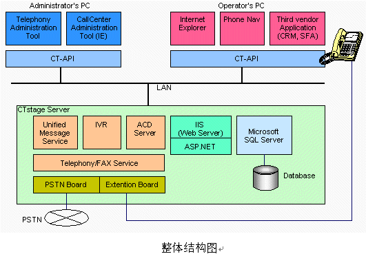 隨著經(jīng)營環(huán)境和企業(yè)環(huán)境的日益激化,作為新時(shí)代的信息策略,計(jì)算機(jī)電話集成(CTI)也由于投資小效益大而倍受注目。沖電氣公司的CTstage實(shí)現(xiàn)最先端的多媒體通信的UnPBX(在服務(wù)器中加插電話板卡,以單臺(tái)計(jì)算機(jī)實(shí)現(xiàn)PBX功能的系統(tǒng))型的開放式CTI系統(tǒng)。在一臺(tái)PC服務(wù)器上實(shí)現(xiàn)IVR和ACD功能、內(nèi)線電話控制、ACD監(jiān)視器等呼叫中心所需要的功能,成為真正意義上的UnPBX呼叫中心。先進(jìn)的CTI的解決方案將作為企業(yè)的經(jīng)營策略,迅速提高適應(yīng)市場(chǎng)的能力。
