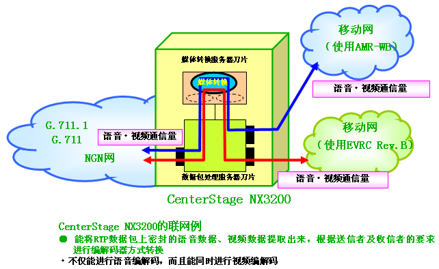 NX3200(以下簡(jiǎn)稱「NX3200」)」上,內(nèi)置了行業(yè)首例運(yùn)營(yíng)商級(jí)寬帶編解碼轉(zhuǎn)換功能。本裝置迅速對(duì)應(yīng)了ITU-T(注2)制定的國(guó)際標(biāo)準(zhǔn)G.711.1(注3)等寬帶編解碼器標(biāo)準(zhǔn),在運(yùn)用移動(dòng)網(wǎng)、固定網(wǎng)的各種語(yǔ)音編解碼器及視頻編解碼器之間,能同時(shí)進(jìn)行大容量通信。本產(chǎn)品即日起開(kāi)始銷往市場(chǎng)。