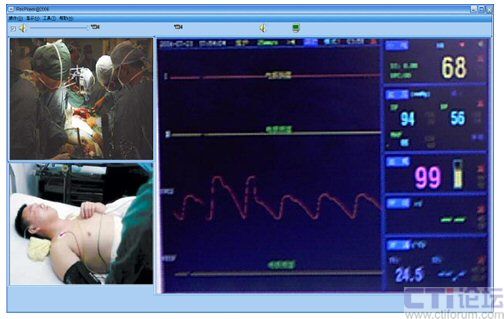 銳取遠(yuǎn)程醫(yī)療系統(tǒng)前端視音頻編碼器將采集到的手術(shù)室監(jiān)護(hù)儀的信號進(jìn)行實(shí)時(shí)編碼和壓縮,通過網(wǎng)絡(luò)傳送給銳取多媒體錄播系統(tǒng)遠(yuǎn)程醫(yī)療系統(tǒng)后臺服務(wù)器上。