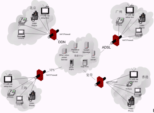 傳統(tǒng)的電信服務電話費分為長途電話費和市話費,其中長途電話的費用遠遠高于普通市話費,因此如何節(jié)省寵大的長話費用一直是企業(yè)關(guān)心的話題。隨著業(yè)務的增長,許多公司需要不斷增設分支機構(gòu),往來總部與各分部之間的電話也越來越頻繁,集團內(nèi)的長途話費居高不下,在公司采取種種控制、限制話費措施的同時也妨礙了各分公司之間充分、及時的溝通。針對上述種種矛盾,北京旋極信息技術(shù)有限公司推出了SIP企業(yè)級VOIP解決方案,該方案可以使集團內(nèi)的各分支機構(gòu)之間聯(lián)系方便、高效、充分、及時的溝通、而通話費用卻為零(只要各分支機構(gòu)能上Internet,就可以免費打國際國內(nèi)長途電話)。