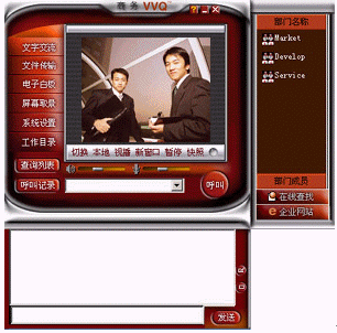 客戶端運(yùn)行簡單、快捷:只需在網(wǎng)絡(luò)中的PC機(jī)上裝上攝像頭和耳麥,無需任何其他的硬件配置,就可以實(shí)現(xiàn)面對(duì)面的雙方通話,并且采用最流行的OCQ操作模式,更利于普及使用;