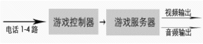 由于許多地區(qū),尤其是縣級(jí)市沒有信息平臺(tái),而且許多電視臺(tái)愿與電話局直接合作。在這種情況下,電話局和電視臺(tái)合作對(duì)有線用戶公布 特服號(hào)碼,如123456,參與互動(dòng)游戲的用戶,統(tǒng)一撥打該號(hào)碼,電話局提供四條用戶線給互動(dòng)游戲系統(tǒng),同時(shí)對(duì)撥打123456的用戶都轉(zhuǎn)到這四條用戶線來,從而接入到互動(dòng)游戲系統(tǒng),由系統(tǒng)給出語音提示引導(dǎo)用戶參與比賽。由于系統(tǒng)最多允許四個(gè)人參與比賽,當(dāng)用戶滿時(shí),撥打游戲熱線的用戶