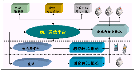 企業(yè)統(tǒng)一通信平臺是電信增值業(yè)務(wù)系統(tǒng),是為運(yùn)營商和企業(yè)設(shè)計的。包含了業(yè)務(wù)支撐、業(yè)務(wù)生成實(shí)現(xiàn)和業(yè)務(wù)管理的綜合業(yè)務(wù)平臺。能無縫融合PSTN、IP和移動等多種網(wǎng)絡(luò),在同一平臺上提供多種電信增值業(yè)務(wù),包括語音增值業(yè)務(wù)和數(shù)據(jù)增值業(yè)務(wù),如企業(yè)統(tǒng)一通信業(yè)務(wù)、企業(yè)虛擬排隊(duì)業(yè)務(wù)、企業(yè)移動電話會議業(yè)務(wù)、企業(yè)移動辦公業(yè)務(wù)、企業(yè)呼叫中心業(yè)務(wù)等。并且實(shí)現(xiàn)了業(yè)務(wù)和系統(tǒng)的統(tǒng)一管理和實(shí)時控制。平臺具有如下特點(diǎn):
