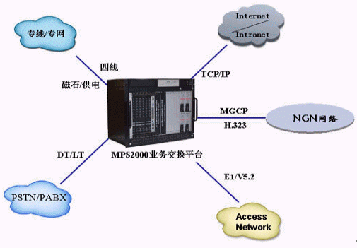 MPS2000增值業(yè)務(wù)應(yīng)用交換平臺豐富的信令協(xié)議和接口,使平臺具備了強大的組網(wǎng)能力。