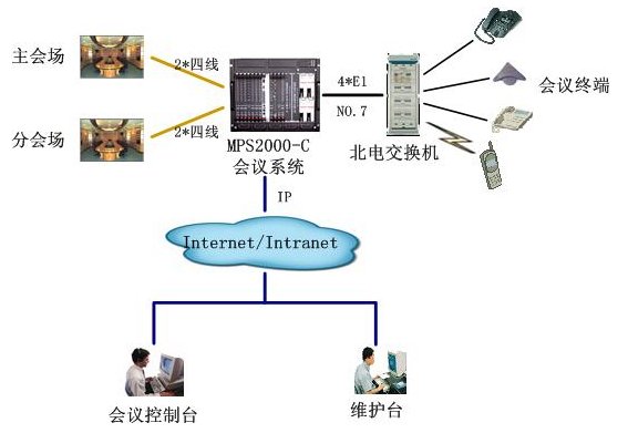 2006年5月,華北電網(wǎng)公司為滿足國家電網(wǎng)公司對會議系統(tǒng) “一主兩備”的要求,急需一套穩(wěn)定可靠電話會議系統(tǒng)作為視頻會議系統(tǒng)的應急備份,一方面解決視頻會議系統(tǒng)的音頻備份要求,另一方面,解決在緊急情況下利用電話會議系統(tǒng)進行應急指揮調(diào)度的需求,同時可通過該會議系統(tǒng)與國家電網(wǎng)公司,以及華北電網(wǎng)下轄公司的會議系統(tǒng)進行結(jié)連。華北電網(wǎng)公司相關(guān)專家經(jīng)過多方比較認證,最終選用邁可行公司自主研發(fā)的MPS2000交互式電話會議系統(tǒng),設(shè)備已于5月30日正式投入使用。 該會議系統(tǒng)通過4個數(shù)字中繼,與北電用戶交換機互連,采用PRI信令。與視頻會議系統(tǒng)主會場采用四線音頻接口接主會場調(diào)音臺,保證與視頻會議系統(tǒng)音頻的無縫對接。通過以太網(wǎng)口與局域網(wǎng)連接,實現(xiàn)維護管理及會議控制等功能。
