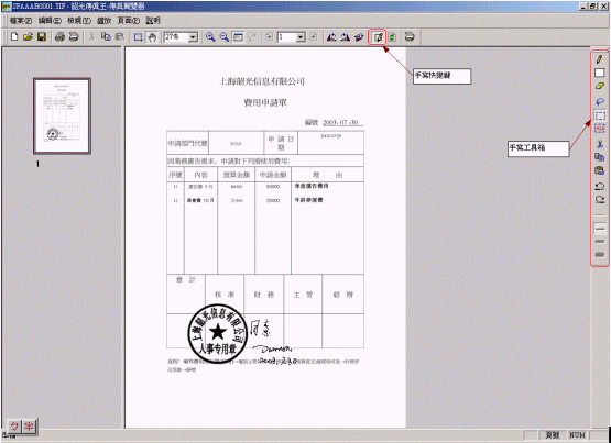 令王總最滿意的是,現(xiàn)在若遇到一些特定的文檔,如需手寫/簽名的文檔契約,就不必將傳真件列印出來,然后再簽名發(fā)送了,可直接用滑鼠(或手寫板)在電腦上就可完成簽名了,大大提高了傳真伺服器的便利性,及文件的保密性真正實(shí)現(xiàn)了電腦化及無紙化的綠色辦公環(huán)境。