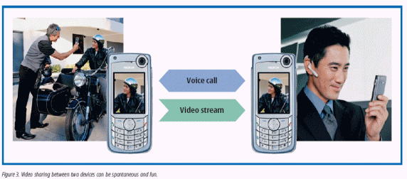 在最近一次諾基亞委托進(jìn)行的IP多媒體研究中顯示,消費者喜歡增加了視頻共享的視頻電話,有趣的手機外觀被看作是非常重要的,而視頻共享也被認(rèn)為是非常有用的,被看作是基于視頻短信的MMS的一個明顯的進(jìn)步。消費者喜歡去共享的時刻是:例如在假期里,購物、舉家外出旅行,或者是一個周末的夜晚。通過視頻共享來展現(xiàn)你的位置及同行人員,可以確保人身的安全。同樣,視頻共享技術(shù)也可以應(yīng)用于商業(yè)領(lǐng)域,如財產(chǎn)狀態(tài)監(jiān)視和遠(yuǎn)程檢查野外工作等。