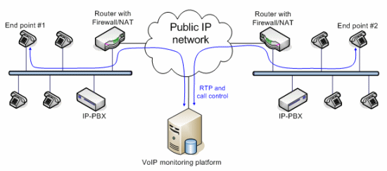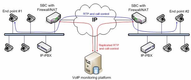 VoIP應(yīng)用的質(zhì)量監(jiān)控分為主動(dòng)式和被動(dòng)式兩種實(shí)現(xiàn)方式。主動(dòng)式的系統(tǒng)能產(chǎn)生呼叫,而被動(dòng)式的系統(tǒng)只是監(jiān)測進(jìn)行中的呼叫。兩種方法各有優(yōu)勢。VoIP監(jiān)控方案的架構(gòu)取決于網(wǎng)絡(luò)Edge設(shè)備的類型和結(jié)構(gòu)。有些大型企業(yè)采用的VoIP網(wǎng)絡(luò)配備了一種特殊設(shè)備,叫SBC(Session boarder controller),除了完成類似路由器的功能外,還能完成流量分配、數(shù)據(jù)/語音信號(hào)加密以及業(yè)務(wù)質(zhì)量控制等功能。此外,通過過濾和替換數(shù)據(jù)包內(nèi)的、與用戶有關(guān)的特定信息,SBC還能隱藏公司的網(wǎng)絡(luò)拓?fù)浣Y(jié)構(gòu)和用戶信息,不被外部的IP世界所知道。