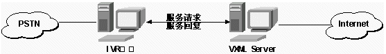 在這里VXML是指Voice XML的服務(wù)器,它負(fù)責(zé)接收IVR轉(zhuǎn)發(fā)過來(lái)的用戶按鍵請(qǐng)求,并返回信息數(shù)據(jù)和操作指令。