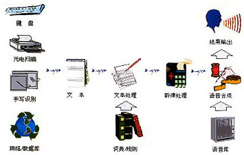 -----按照人類(lèi)言語(yǔ)功能的不同層次,語(yǔ)言合成也可分成三個(gè)層次,它們是:(1)從文字到語(yǔ)音的合成(Text-To-Speech);(2)從概念到語(yǔ)音的合成(Concept-To-Speech);(3)從意向到語(yǔ)音的合成(Intention-To-Speech)。這三個(gè)層次反映了人類(lèi)大腦中形成說(shuō)話內(nèi)容的不同過(guò)程,涉及人類(lèi)大腦的高級(jí)神經(jīng)活動(dòng)。不難想象,即使是按規(guī)則的文字到語(yǔ)音合成(文語(yǔ)合成)也已經(jīng)是相當(dāng)困難的任務(wù)。為了合成出高質(zhì)量的語(yǔ)言,除了依賴(lài)于各種規(guī)則,包括語(yǔ)義學(xué)規(guī)則、詞匯規(guī)則、語(yǔ)音學(xué)規(guī)則外,還必須對(duì)文字的內(nèi)容有很好的理解,這將涉及自然語(yǔ)言理解的問(wèn)題。從這一點(diǎn)講,文語(yǔ)轉(zhuǎn)換系統(tǒng)實(shí)際上也可看作一個(gè)人工智能系統(tǒng)。圖1顯示了一個(gè)完整的文語(yǔ)轉(zhuǎn)換系統(tǒng)示意圖。文語(yǔ)轉(zhuǎn)換過(guò)程是先將文字序列轉(zhuǎn)換成音韻序列,再由語(yǔ)音合成器生成語(yǔ)音波形。其中第一步涉及語(yǔ)言學(xué)處理,例如分詞、字音轉(zhuǎn)換等,以及一整套有效的韻律控制規(guī)則;第二步需要先進(jìn)的語(yǔ)音合成技術(shù),能按要求實(shí)時(shí)合成出高質(zhì)量的語(yǔ)音流。因此一般說(shuō)來(lái),文語(yǔ)合成系統(tǒng)都需要一套復(fù)雜的文字序列到音素序列的轉(zhuǎn)換程序,也就是說(shuō),文語(yǔ)轉(zhuǎn)換系統(tǒng)不僅要應(yīng)用數(shù)字信號(hào)處理技術(shù),而且必須有大量的語(yǔ)言學(xué)知識(shí)的支持。當(dāng)然其中語(yǔ)音合成終究還是最基本的部分,它相當(dāng)于“人工嘴巴”,任何語(yǔ)言合成系統(tǒng)包括文語(yǔ)轉(zhuǎn)換系統(tǒng),都離不開(kāi)語(yǔ)音合成器。