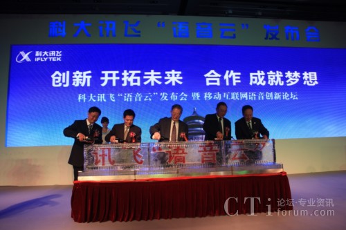 CTI論壇(ctiforum)10月29日消息(記者 潘婷婷): 2010年10月28日,“科大訊飛‘語(yǔ)音云’發(fā)布會(huì)暨移動(dòng)互聯(lián)網(wǎng)語(yǔ)音創(chuàng)新論壇”在北京香格里拉飯店隆重舉行?拼笥嶏w作為中國(guó)語(yǔ)音產(chǎn)業(yè)領(lǐng)導(dǎo)者,在業(yè)界率先推出“訊飛語(yǔ)音云”,對(duì)于促進(jìn)國(guó)家新近確定的七大戰(zhàn)略新興產(chǎn)業(yè)之一的“新一代信息技術(shù)”發(fā)展具有重大意義,將推動(dòng)移動(dòng)互聯(lián)網(wǎng)邁入語(yǔ)音時(shí)代,創(chuàng)新無(wú)限豐富的應(yīng)用、創(chuàng)造廣闊的市場(chǎng)藍(lán)海。因此,此次發(fā)布會(huì)得到了各界的高度關(guān)注,各相關(guān)政府部門(mén)領(lǐng)導(dǎo),聯(lián)想、騰訊、愛(ài)國(guó)者、優(yōu)視科技、播思通訊等各行業(yè)及移動(dòng)互聯(lián)網(wǎng)領(lǐng)軍企業(yè)的代表,媒體界朋友,匯聚一堂、共襄盛舉,并就移動(dòng)互聯(lián)網(wǎng)與語(yǔ)音產(chǎn)業(yè)的相互融合、創(chuàng)新發(fā)展、合力共贏(yíng)進(jìn)行了深入熱烈的探討。