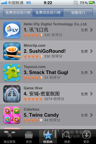 CTI論壇(ctiforum)5月24日消息(記者 張潔):科大訊飛推出的移動互聯(lián)網(wǎng)時代語音創(chuàng)新應(yīng)用——訊飛口訊,自5月18日登陸App Store為用戶提供免費(fèi)下載應(yīng)用以來,迅即得到了國內(nèi)外蘋果手機(jī)用戶的高度關(guān)注和熱烈支持,短短兩天時間之內(nèi)即在App Store免費(fèi)項(xiàng)目排行榜登頂,并已持續(xù)多日占據(jù)榜首位置。排行榜位置是由用戶下載量、實(shí)際應(yīng)用頻率和用戶評價等各項(xiàng)指標(biāo)綜合評定形成的,充分顯示了廣大“果粉”對于“訊飛口訊”這一創(chuàng)新性應(yīng)用的喜愛與高度認(rèn)可。CTI論壇報(bào)道