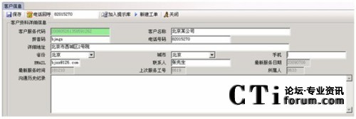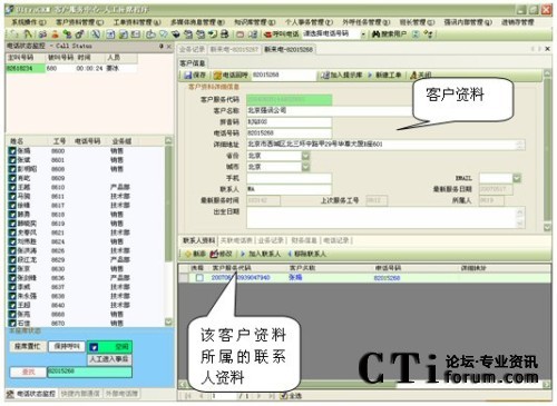 當(dāng)有電話來電時(shí),系統(tǒng)顯示來電號(hào)碼及來電人員的客戶資料信息;