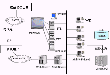 呼叫中心是伴隨著激烈的市場(chǎng)競(jìng)爭(zhēng)和企業(yè)成功的經(jīng)營(yíng)理念而生,既低端的價(jià)格競(jìng)爭(zhēng)向高端的服務(wù)競(jìng)爭(zhēng)以及對(duì)企業(yè)核心客戶的保持。它融合了傳統(tǒng)的公共電話網(wǎng)PSTN,計(jì)算機(jī)網(wǎng)絡(luò),以及數(shù)據(jù)庫(kù)存儲(chǔ)技術(shù)和自動(dòng)語音應(yīng)答IVR等技術(shù),將語音與數(shù)據(jù)資源有效的結(jié)合,為企業(yè)在技術(shù)上保證核心客戶的高忠誠(chéng)度打下了堅(jiān)實(shí)的基礎(chǔ)。