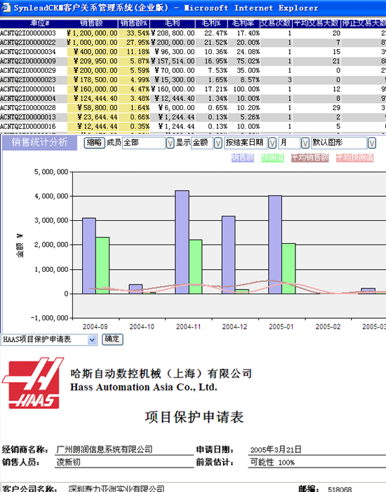 ,"可擴展樣式語言轉(zhuǎn)換")來制作。這種語言也是通用的,并且容易掌握。為了獲得更強大的功能,XSLT允許插入Javascript等一些其他語言或者插件。在這些語言的操縱下,結果樹的輸出形式是非常靈活的。下圖是國內(nèi)知名的CRM軟件--SynleadCRM企業(yè)版將其XML數(shù)據(jù)源轉(zhuǎn)換成的一些報表和圖表: