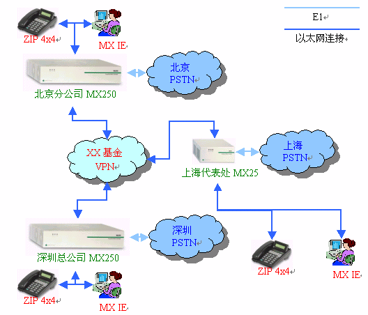 XX基金已經(jīng)建立總公司與分公司之間的VPN,在此基礎(chǔ)上建設(shè)IP語音系統(tǒng)能夠充分利用現(xiàn)有的VPN資源。