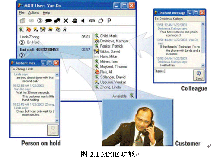 MXIE是一個用戶端UCI(Unified communications Interface,統(tǒng)一通信界面)軟件。通過它可以實時設(shè)置或查看工作狀態(tài);使用自動更新的通訊錄,無需撥號進行呼叫;發(fā)送即時消息(IM:Instant Message,軟件和電話互發(fā));發(fā)送/收聽語音郵件;群發(fā)/群收傳真;設(shè)置個性化的來電處理規(guī)則等。