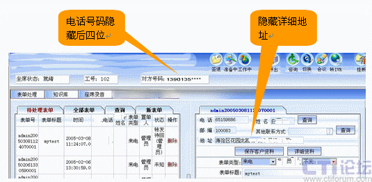 例如電話號碼、送貨地址是最為重要的商業(yè)信息。將部分信息對電銷人員、中間環(huán)節(jié)的人員隱藏使其無法進行“飛單”,而在送貨環(huán)節(jié)再OPEN詳細信息。如下圖所示: