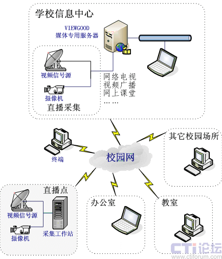 流媒體技術(shù)在中小學教學中的應(yīng)用只是其在教育應(yīng)用中的一種,整個應(yīng)用都可以通過流媒體服務(wù)平臺來實現(xiàn)。