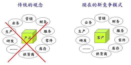 在CRM系統(tǒng)架構(gòu)中,如何持續(xù)和客戶保持好關(guān)系、進而提高客滿意度是最主要目標(biāo)之一,也是客戶關(guān)系管理架構(gòu)的核心價值所在,F(xiàn)在企業(yè)的競爭模式已經(jīng)從以往以產(chǎn)品為中心的思考模式,轉(zhuǎn)變到以客戶為中心的思考模式。(如圖一)