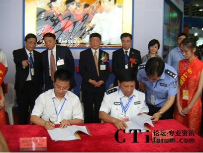 CTI論壇(ctiforum)06月26日消息: 6月18日,第七屆中國•海峽項目成果交易會在福州金山展覽城隆重召開。第二屆海峽公共安全及警用裝備科技項目博覽會作為其中重要的一塊專題展,受到了福建省省長、省公安廳及各地市公安局各級領(lǐng)導(dǎo)的高度重視,公安、邊防、消防等多個部門全力參與?七_(dá)攜可視指揮調(diào)度、圖像整合、電子地圖、智能應(yīng)用等最新的視頻監(jiān)控技術(shù),作為公安系統(tǒng)“357”工程代表技術(shù)在本次展會上進(jìn)行了展出和演示。簽約現(xiàn)場,(右)福建省公安廳副廳長,(左)科達(dá)公司總經(jīng)理陳衛(wèi)東先生