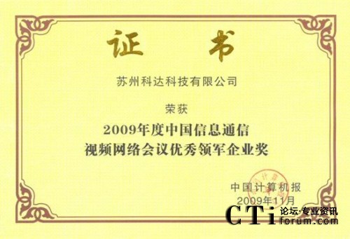 科達(dá)獲中國信息通信視頻網(wǎng)絡(luò)會議優(yōu)秀領(lǐng)軍企業(yè)獎
