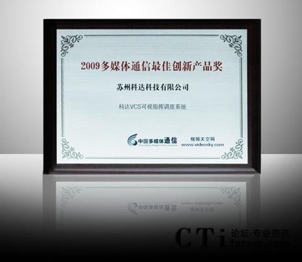 CTI論壇(ctiforum)3月29日消息(記者 袁青):近日,在《中國多媒體通信》雜志及視頻天空網(wǎng)強勢啟動的“2009年度中國多媒體通信行業(yè)大獎”評選活動中,科達(dá)VCS可視指揮調(diào)度系統(tǒng)以其產(chǎn)品的專業(yè)性、直觀性、準(zhǔn)確性及有效性榮獲2009中國多媒體通信行業(yè)“創(chuàng)新產(chǎn)品獎”。CTI論壇報道