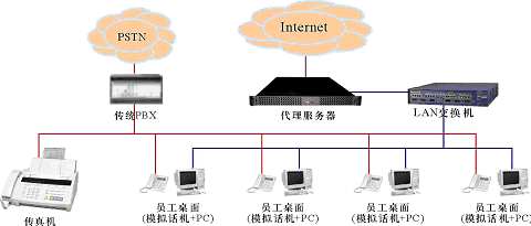 。。某中小企業(yè),無分支機(jī)構(gòu),現(xiàn)時(shí)有一個(gè)由傳統(tǒng)PBX構(gòu)建的電話系統(tǒng)和一個(gè)以太局域網(wǎng),兩者相互獨(dú)立,局域網(wǎng)通過一臺代理服務(wù)器用以太網(wǎng)或ADSL方式接入Internet。企業(yè)的語音通信由電話系統(tǒng)實(shí)現(xiàn);員工的日常工作需要使用計(jì)算機(jī)以及多種局域網(wǎng)和Internet服務(wù)(如文件共享、網(wǎng)絡(luò)打印、瀏覽網(wǎng)頁、收發(fā)郵件等),這些服務(wù)通過局域網(wǎng)提供,目前,在企業(yè)的經(jīng)營管理上還沒有應(yīng)用相關(guān)的業(yè)務(wù)系統(tǒng)(如工作流、ERP、CRM等)。