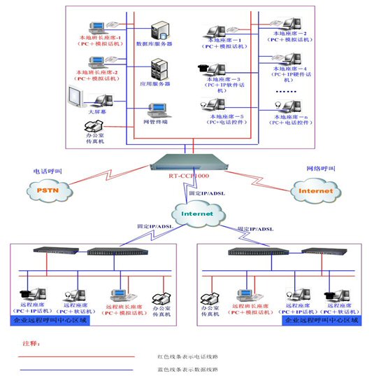 在北京石景山區(qū)政府68812345便民服務(wù)熱線項(xiàng)目中,RT-CCP1000內(nèi)置的SIP協(xié)議為區(qū)政府便民服務(wù)落到了實(shí)處。在此次項(xiàng)目中,區(qū)政府為各類熱線問(wèn)題均設(shè)置了遠(yuǎn)端專家坐席,專家坐席通過(guò)IP電話和數(shù)據(jù)專網(wǎng)遠(yuǎn)程注冊(cè)到RT-CCP1000設(shè)備上,這樣當(dāng)本地普通坐席遇到緊急或重要問(wèn)題時(shí),可以將來(lái)電直接轉(zhuǎn)接給相關(guān)業(yè)務(wù)的遠(yuǎn)端專家坐席,以便得到及時(shí)有效的處理。