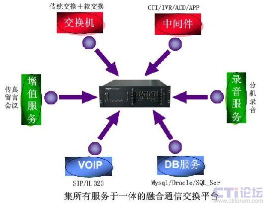 集IP-PBX、CTI、IVR、錄音等服務功能于一體,集傳真、留言、會議等增值業(yè)務于一體,無需購買任何第三方設備(如:傳真卡、錄音卡等)即可實現(xiàn)全套的呼叫中心功能。同時也解決了不同網(wǎng)絡之間、多套系統(tǒng)之間存在兼容性差、共享性差、重復投資、操作復雜等諸多缺陷。