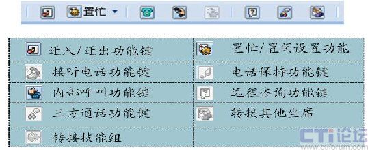 基于業(yè)務支撐平臺的JTAPI開發(fā)包所開發(fā)的Applet程序,實現(xiàn)座席員所需要的話務功能,可以和頁面進行交互;軟電話條如下: