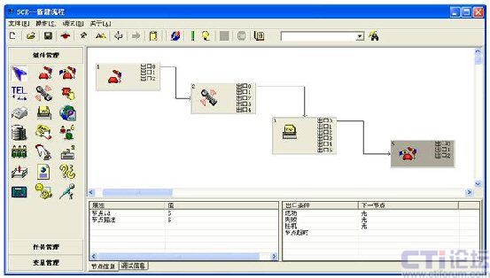 簽入、簽出、置閑、置忙、應答、掛機、保持/取回、咨詢/取消咨詢、兩路切換、轉接、三方會議、轉技能組、外呼等;豐富的業(yè)務系統(tǒng)功能包括:工單管理、知識庫、客戶管理、質(zhì)檢管理、外撥管理、業(yè)務統(tǒng)計報表、公告板、郵件管理、系統(tǒng)管理、前臺業(yè)務(坐席)功能、班長功能、數(shù)據(jù)同步、全程錄音、業(yè)務處理等,這些功能不作詳細介紹。IVR流程也是采用非常先進的圖形化流程編輯器,通過簡單的拖、拉圖標方式即可實現(xiàn)對IVR流程的定制: