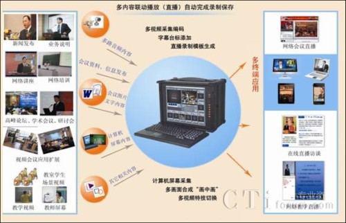 CTI論壇(ctiforum)6月8日消息(記者 潘婷婷):隨著視訊技術(shù)的不斷發(fā)展,市場(chǎng)上出現(xiàn)了越來越多的應(yīng)用終端,除了傳統(tǒng)的PC外,IPAD、IPHO等新興移動(dòng)終端紛紛進(jìn)入市場(chǎng),多終端應(yīng)用的網(wǎng)絡(luò)視音頻系統(tǒng)越來越被用戶所關(guān)注。傳統(tǒng)的直播錄播系統(tǒng)在很大的程度上已不能滿足部分用戶的需求,清晰、流暢、支持多終端應(yīng)用的網(wǎng)絡(luò)直播錄播系統(tǒng)已經(jīng)成為網(wǎng)絡(luò)視頻應(yīng)用的亮點(diǎn)和優(yōu)勢(shì)。北京經(jīng)緯中天信息技術(shù)有限公司作為國(guó)內(nèi)一流的專業(yè)網(wǎng)絡(luò)視音頻應(yīng)用平臺(tái)開發(fā)商和服務(wù)商,不僅僅專注于行業(yè)技術(shù)的研究,同時(shí)更加關(guān)注市場(chǎng)的需求,實(shí)時(shí)地推出了“支持多終端應(yīng)用的富媒體直播錄播系統(tǒng)”,可很好地滿足用戶多種網(wǎng)絡(luò)視頻應(yīng)用。