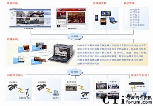 CTI論壇(ctiforum)6月29日消息(記者 楊佳林):近日,“2011年第二屆中國(guó)國(guó)際指揮調(diào)度技術(shù)與設(shè)備展覽會(huì)”在中國(guó)國(guó)際展覽中心隆重召開(kāi)。北京經(jīng)緯中天信息技術(shù)有限公司攜“天翼富媒體直播錄播工作站及統(tǒng)一網(wǎng)絡(luò)視頻監(jiān)控管理平臺(tái)”參展。作為網(wǎng)絡(luò)視音頻應(yīng)用領(lǐng)域的佼佼者,經(jīng)緯中天參與此次安防領(lǐng)域的展會(huì)充分說(shuō)明了公司業(yè)務(wù)的全面擴(kuò)展,其推出的“統(tǒng)一網(wǎng)絡(luò)視頻監(jiān)控管理平臺(tái)”及富媒體工作站在視頻通信領(lǐng)域的擴(kuò)展應(yīng)用理念受到了各界參會(huì)人士的高度關(guān)注和一致好評(píng)。