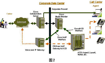 ----采用基于Internet的呼叫中心與電子商務網站相結合的體系結構,是實現(xiàn)競爭優(yōu)勢的重要手段。通過將呼叫中心與Internet集成為一體,可以提供自我?guī)椭、協(xié)同合作、基于技能的路由、集成回叫、電子郵件路由、自動電子郵件響應、集成工作流程管理、預設的工作流程、動態(tài)內容整合等諸多功能,從而實現(xiàn)網絡客戶互動。Cisco客戶互動套件(CCIS)正體現(xiàn)了這一思想。