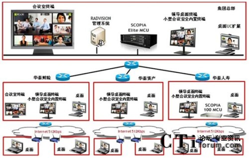 隨著業(yè)務(wù)的不斷擴大,華泰保險經(jīng)紀有限公司需要不斷加快信息交流的速度,以確保信息交流的暢通。華泰保險經(jīng)紀有限公司希望能夠通過現(xiàn)有網(wǎng)絡(luò),利用先進的通信傳輸技術(shù),組建整個集團公司的視頻會議系統(tǒng),并能保證視頻會議系統(tǒng)的正常、穩(wěn)定運行。同時,華泰保險的領(lǐng)導(dǎo)希望能夠充分利用已經(jīng)建成的公司網(wǎng)絡(luò)資源,將各地營業(yè)部連接在一起,用于召開不同規(guī)模、各種形式的行政會議和業(yè)務(wù)會議、業(yè)務(wù)培訓(xùn),以達到提高工作效率、節(jié)省差旅成本、加強總部對各個分支機構(gòu)管理的目的。從而真正增強企業(yè)的競爭力,推動企業(yè)信息化建設(shè)的發(fā)展。
