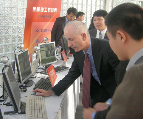 11月24日,微軟信息工作者解決方案媒體活動在北京隆重召開,微軟(中國)有限公司邀請其合作伙伴共同參與此項盛事,北京華緯訊公司作為受邀的九家核心合作伙伴之一,攜“快視通(Quick Video Communicator)”視頻會議系統(tǒng)與微軟共同展示了基于Office System的協(xié)同解決方案,致力于為商務(wù)人士打造完美的信息化協(xié)同辦公平臺,以實現(xiàn)個人、團隊與公司協(xié)同辦公的無縫連接。