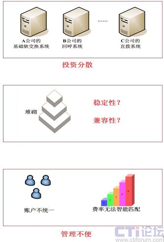 很多運(yùn)營(yíng)者常常都是最初搭建一套基礎(chǔ)的VOIP運(yùn)營(yíng)平臺(tái),之后出現(xiàn)回呼業(yè)務(wù),購(gòu)買一套回呼系統(tǒng)與原系統(tǒng)對(duì)掛接,然后發(fā)現(xiàn)直撥業(yè)務(wù)在國(guó)際話務(wù)中優(yōu)勢(shì)明顯,于是又搭建一套直撥系統(tǒng)。