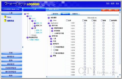權(quán)限管理設計,采樹枝狀展開圖之設計模式,讓系統(tǒng)管理者可以輕易地掌握目前建立組織(各個據(jù)點)、人員(為值機員、督導、評分員或管理者)與不同群組之狀態(tài),設定多層級的權(quán)限密碼,增加維護便利性。
