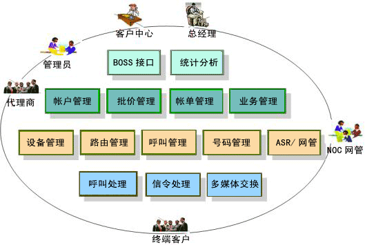 呼叫處理 | 設(shè)計(jì)原則: 處理接受終端用戶的呼叫請求。 代理向policy請求呼叫認(rèn)證系統(tǒng) 中每一個(gè)呼叫,負(fù)責(zé)上報(bào)給policy,并接受policy的指示。 功能: 設(shè)備管理:包括:設(shè)備信息管理、設(shè)備號碼管理、用戶的路由策略決定,統(tǒng)計(jì)分析、綜合查詢等等。 路由管理:為管理者全方位地管理系統(tǒng)擁有的路由資源,并對這些資源進(jìn)行開發(fā)提供決策支持。如為不同的客戶不同的要求,提供最適合的路由組合。 呼叫管理:監(jiān)控系統(tǒng)現(xiàn)在正在進(jìn)行的通話,讓管理者實(shí)時(shí)了解系統(tǒng)當(dāng)前的業(yè)務(wù)狀況。 ASR統(tǒng)計(jì):讓管理員實(shí)時(shí)了解系統(tǒng)的近一段時(shí)間的各類用戶,各路由的接通率,平均通話時(shí)長等。 網(wǎng)管:提供管理員管理每個(gè)設(shè)備的信息,并提供遠(yuǎn)程登錄管理到Internet上任何注冊到系統(tǒng)上的設(shè)備。 帳戶管理:管理系統(tǒng)中的每一個(gè)帳戶,支持多級的帳戶管理。上一級可以依據(jù)權(quán)限對下一級進(jìn)行管理。 批價(jià)管理:為各種帳戶提供與其相適應(yīng)的價(jià)格策略,以最低的成本最有效地激勵(lì)客戶。如定制打折,套餐等不同的定價(jià)策略. 帳單管理:為每個(gè)帳戶提供定時(shí)準(zhǔn)確帳單收據(jù)。可生成 Word、Excel、txt 等不同格式的帳單明細(xì)報(bào)表和統(tǒng)計(jì)報(bào)表。 業(yè)務(wù)管理:為每個(gè)用戶提供各種不同用戶所需要的業(yè)務(wù),并能快速的提供新的業(yè)務(wù)。如呼叫轉(zhuǎn)移,呼叫等待等業(yè)務(wù)。 |