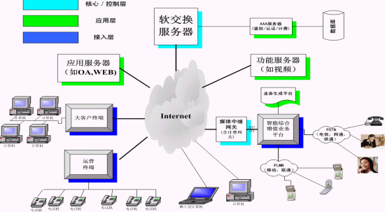 在此基礎(chǔ)下電信、網(wǎng)通、移動(dòng)、聯(lián)通、鐵通、衛(wèi)通等電信運(yùn)營(yíng)商可用來(lái)做下一代網(wǎng)絡(luò)(NGN)業(yè)務(wù)及運(yùn)營(yíng),虛擬電信運(yùn)營(yíng)商和增值業(yè)務(wù)服務(wù)商、新興電信運(yùn)營(yíng)商開展各種電信運(yùn)營(yíng)、增值業(yè)務(wù)和搶占語(yǔ)音市場(chǎng)的利器,政府和企業(yè)辦公的即時(shí)通信平臺(tái)和呼叫中心平臺(tái)、信息服務(wù)、管理平臺(tái)。