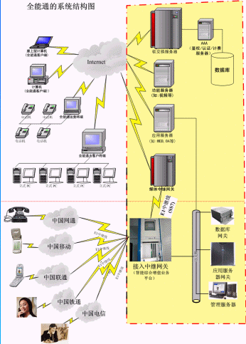 在和創(chuàng)世紀(jì)全能通的基礎(chǔ)下電信、網(wǎng)通、移動(dòng)、聯(lián)通、鐵通、衛(wèi)通等電信運(yùn)營(yíng)商可用來(lái)做下一代網(wǎng)絡(luò)(NGN)業(yè)務(wù)及運(yùn)營(yíng),虛擬電信運(yùn)營(yíng)商和增值業(yè)務(wù)服務(wù)商、新興電信運(yùn)營(yíng)商開展各種電信運(yùn)營(yíng)、增值業(yè)務(wù)和搶占語(yǔ)音市場(chǎng)的利器。(具體有關(guān)‘如何用全能通平臺(tái)切入語(yǔ)音市場(chǎng)’,請(qǐng)來(lái)來(lái)電咨詢)