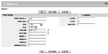 營銷計(jì)劃管理功能可以讓用戶跟蹤每個營銷計(jì)劃已生成的業(yè)務(wù)機(jī)會量。當(dāng)創(chuàng)建業(yè)務(wù)機(jī)會時,用戶可以在營銷計(jì)劃來源字段中填入相關(guān)信息,以表明該業(yè)務(wù)機(jī)會是由營銷計(jì)劃生成的,從而檢驗(yàn)、評定每個營銷計(jì)劃的執(zhí)行效率。