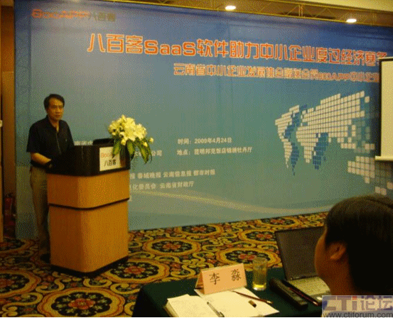 CTI論壇(ctiforum)05月07日消息: 4月24日下午,由云南省中小企業(yè)發(fā)展協(xié)會(huì)主辦、八百客(北京)軟件有限公司協(xié)辦的“八百客SaaS軟件助力中小企業(yè)度過(guò)經(jīng)濟(jì)寒冬——云南省中小企業(yè)發(fā)展協(xié)會(huì)贈(zèng)送會(huì)員800APP中小企業(yè)版活動(dòng)”在昆明邦克飯店隆重舉行。云南省中小企業(yè)發(fā)展協(xié)會(huì)秘書長(zhǎng)華松、八百客首席應(yīng)用專家高少義與來(lái)自云南省近100家的中小企業(yè)代表,共同探討了如何通過(guò)信息化建設(shè)方式來(lái)幫助中小企業(yè)獲得商業(yè)機(jī)會(huì),把握商機(jī),提高企業(yè)經(jīng)營(yíng)業(yè)績(jī)。CTI論壇報(bào)道