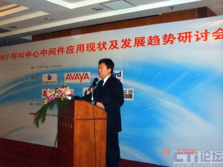 2007年11月29日,由CTI論壇主辦的,2007呼叫中心中間件應(yīng)用現(xiàn)狀及發(fā)展趨勢研討會在上海光大會展中心國際大酒店隆重召開,以下是主題演講實錄: 主持人:感謝王總的演講!下一個演講者,是Avaya中國公司應(yīng)用及解決方案高級顧問經(jīng)理張京輝先生,他在業(yè)界也有10年以上的從業(yè)經(jīng)驗。歡迎!