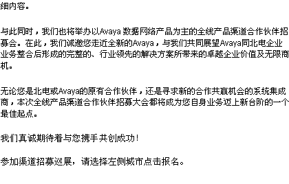 Avaya/Nortel整合產(chǎn)品線渠道招募會10城市
