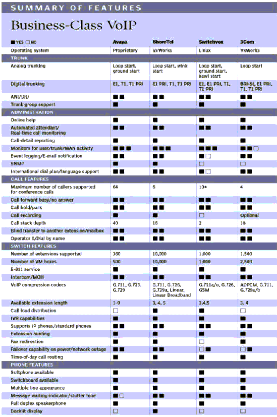附:第三方測評。美國著名計算機雜志《PC Magazine》在2005年第11期發(fā)表了其對當(dāng)前流行的企業(yè)級VoIP電話系統(tǒng)第三方測評結(jié)果,以下是原文掃描摘錄: