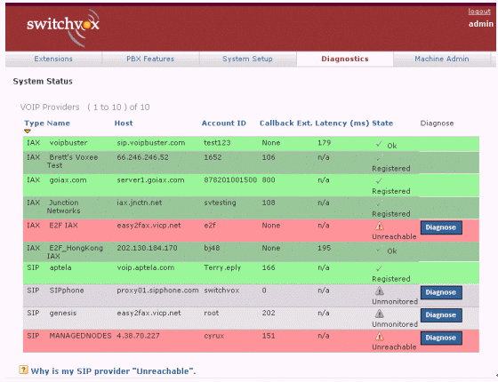 圖2中綠色表示正常,紅色表示出現(xiàn)問題,白色表示從沒有接通過。如果你按診斷(Diagnose),系統(tǒng)便會通過自動測試,告訴你問題出自那一段落。如果需要對每一個的詳細解析,可以按底部Why這個標題,找尋答案。類似的終端、話機等配置、硬件診斷等,也有非常明撩的界面與解決問題的辦法。