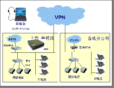 有了這個(gè) IP 電話網(wǎng)絡(luò),出差員工可以方便地使用軟電話通過網(wǎng)絡(luò)與公司免費(fèi)通訊,直接可以通過公司的 IP 電話網(wǎng),撥打當(dāng)?shù)仉娫,?shí)行長(zhǎng)話變市話,降低了出差通訊成本。