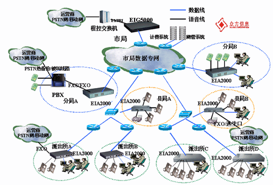 公安系統(tǒng)作為一家話務(wù)量較大的國(guó)家職能部門,平時(shí)各個(gè)分局,各個(gè)派出所之間及上下級(jí)之間的電話、傳真等交流非常多,每月支付的話費(fèi)數(shù)目相當(dāng)可觀,公安部門急需找到一種價(jià)格更便宜、服務(wù)更周到,同時(shí)使用便捷的通話解決方案,以降低辦公費(fèi)用,提高工作效率。采用了深圳眾方信息的VoIP解決方案,能使得公安部門整體話費(fèi)節(jié)省了至少50%以上,而且能實(shí)現(xiàn)多種業(yè)務(wù)的綜合處理,包括語音、數(shù)據(jù)、視頻、圖像等。